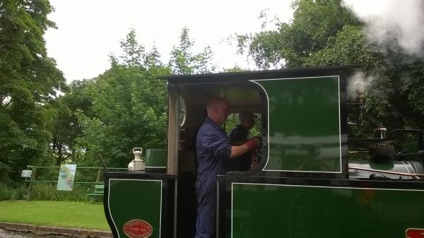 2. At the front, ISAAC’s driver Pete Williams whistles and starts the train away. Fireman Dave Carter has ensured a good amount of steam for the boiler.