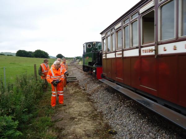9. An early task for the track gang was to go down the line with a works train and collect the old rotted sleepers recently replaced. Followed by some tidying work at Rowley Moor Farm.
