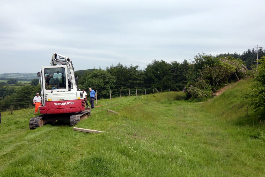 12. & 13. Making real progress. The new fence line is set 20’ outside the existing one to allow better access once the track has been laid.