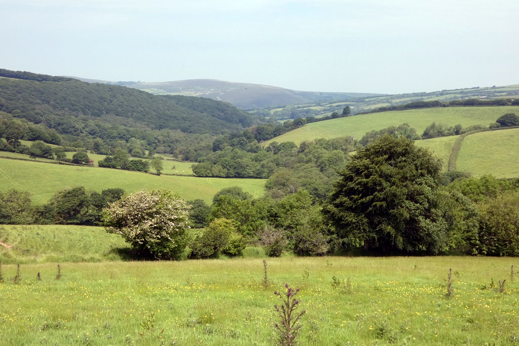 18. Further along the line towards Lynton - Rowley Barton Farm in the foreground, with Martinhoe in the far distance.
