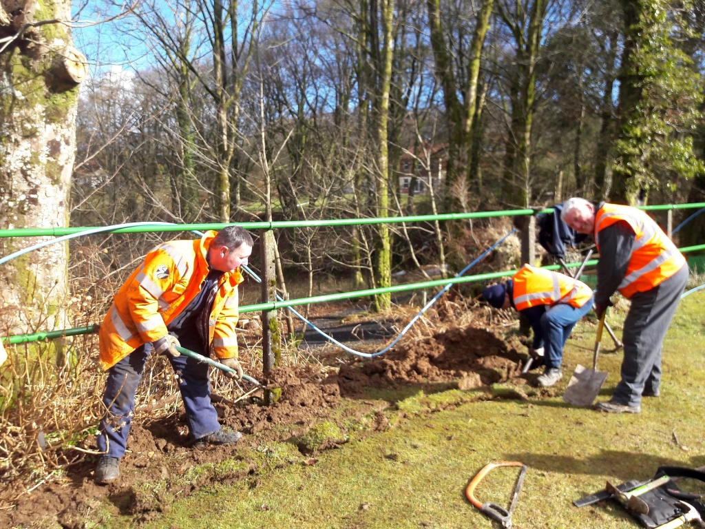 3. Hand digging the trench for a pipe to provide a water supply here for carriage cleaning etc.