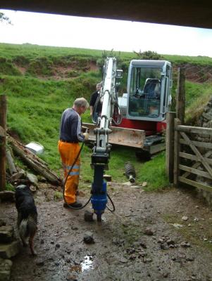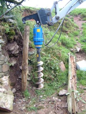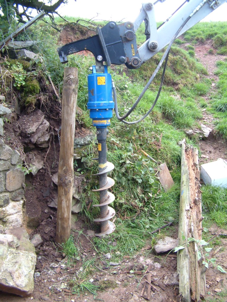 2. The auger in action, the old post can be seen to the right of the picture.