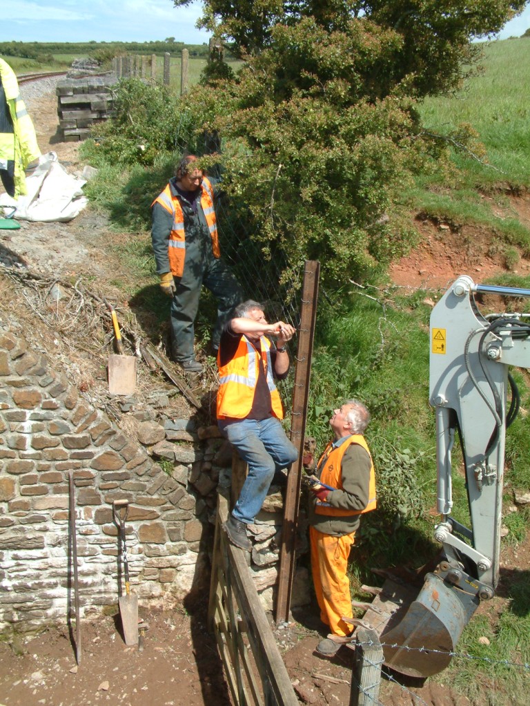 Martin Budd, meanwhile, had taken the excavator further down the field to clear out a ditch which collects water to drain through a pipe under the trackbed. If left unchecked this could result in the formation becoming water logged at that point. Getting the equipment back to Woody Bay had to wait until after the last train so we finally finished at about 5.00pm. A satisfying day.