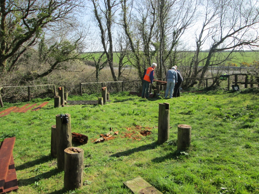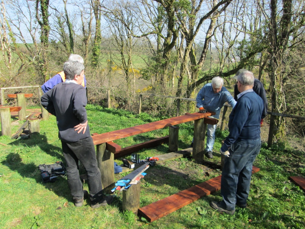 3. Next the seats were fixed onto the stumps - the table proving a useful bench for all the tools needed here.