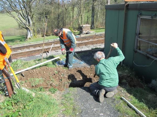 6. Back at Woody Bay, electricians Dave Drayson and Dave Bloomfield were digging a cable run from the mess room to the car park. This is to provide electric and telephone cables for the entrance marquees used during galas, enabling credit card transactions at these locations.