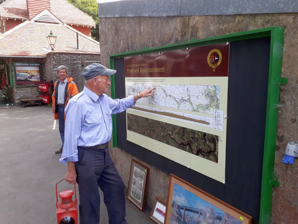 4. .....assisted by Jim Price who reminds himself over the extension plans with the 'Proposed Reinstatement' map displayed on the stable.