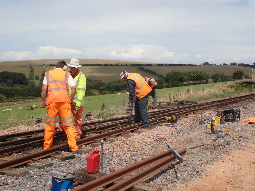 18. ...resuming the jacking and packing of the points at the station throat, surrounded by the tools of their trade.