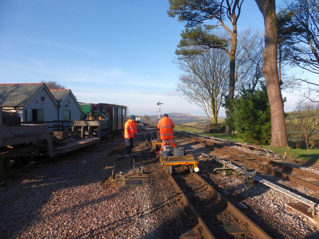 13. Trevor Buck - member of the L&B's Signalling Team - was on site today greasing all the points, cranks and rollers at Woody Bay.