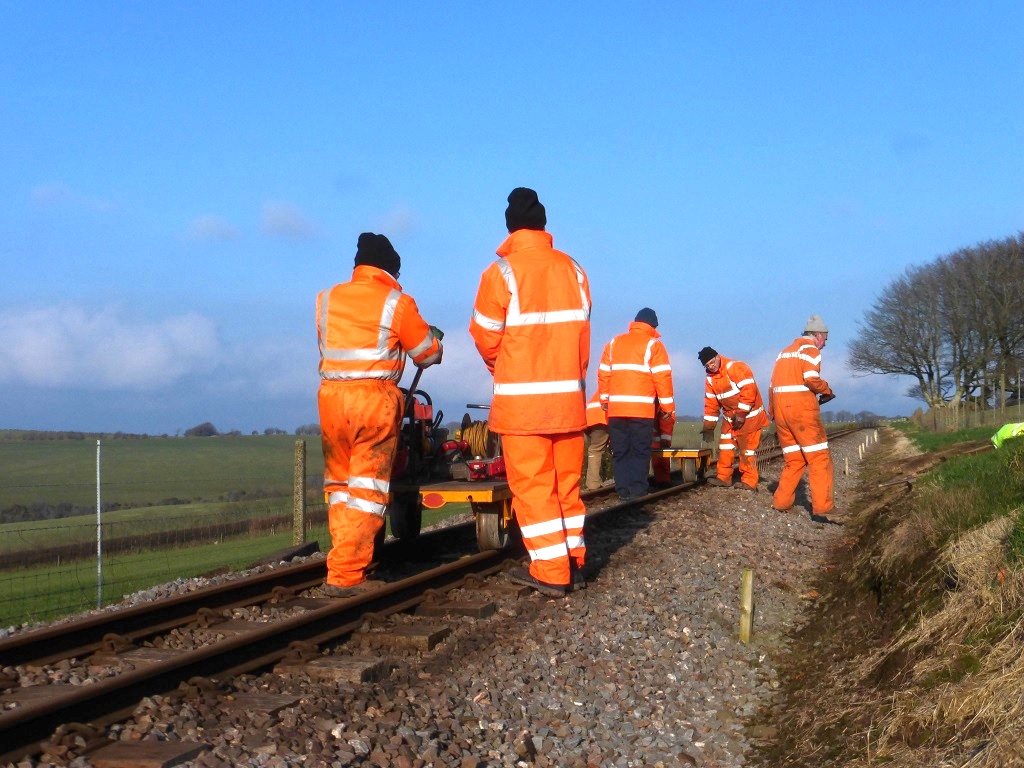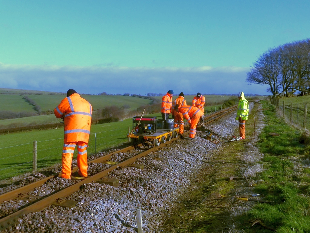 17-21. Taking the tools down the line for more sleeper renewals. The gang welcomed new volunteers John and Jamie today. Another 14 completed only ....? to do!