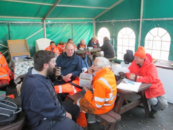 4. Lunch in the Marquee. With a training course on the use and maintenance of chainsaws for various L&B personnel taking place in the mess room, today’s lunch hour for the volunteers was taken in the marquee instead.