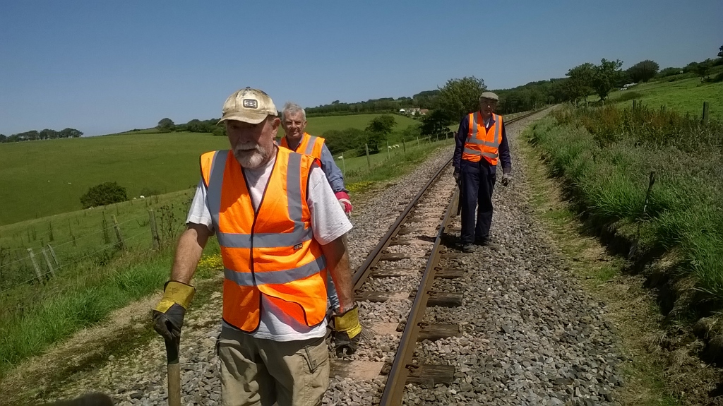 12. Mike, Roger, Dave and Don in a line completing the ballast tidying. Next time there are a few sleepers to replace as part of the ongoing maintenance programme.