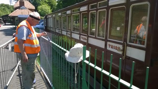 6. This week's Nigel Spencer picture shows him continuing the railing repainting - this time by the loading dock, with Carriage No. 16 stabled behind.