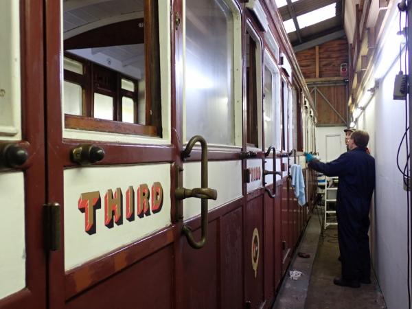 6. In the paint shop Dave and Barrie discussed the coach renovation work required.
