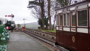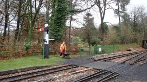 12. & 13. Towards the end of the day, when the more senior members of the Thursday workforce were beginning to fade, the two youngest members worked on! Ali Burgess lubricating points and Ryan barrowing cinders down to the woodland paths.