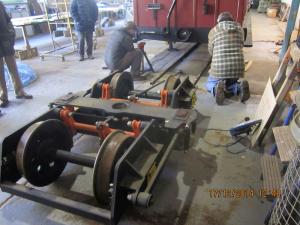 Martyn Budd and John Uphill took a trip to Pilton EAST this week to collect one of the bogies currently under carriage 11. Due to our operating trains throughout November and December, the annual routine maintenance on the carriage bogies is now running slightly behind schedule.