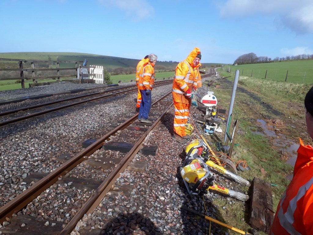 The track gang braved the cold wind to resume more sleeper renewals along the loop line at Killington Lane.