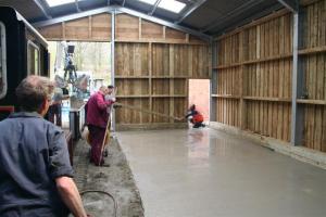 Todays main task was to concrete the floor in the shed extension. Several volunteers helped with this important project which after a hard days toil fighting time against the setting cement was finally completed and with the wagons and tools all washed by 1700.
