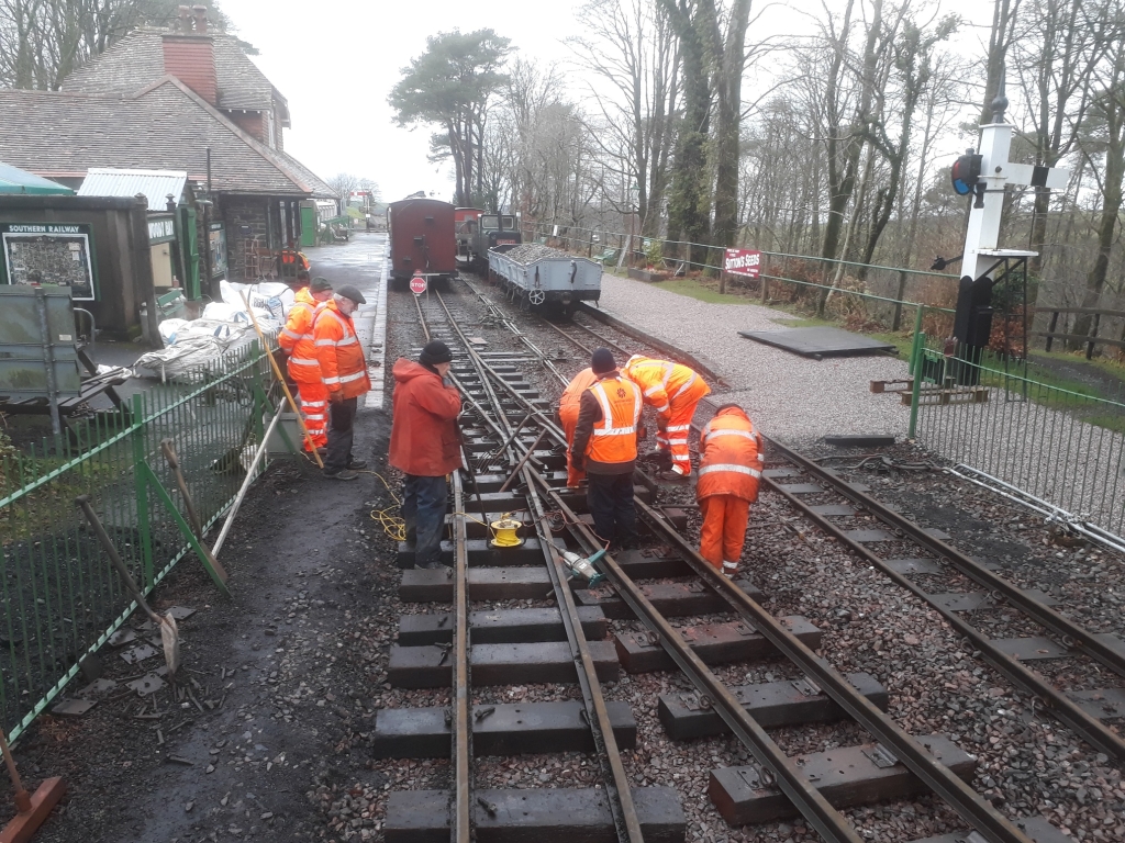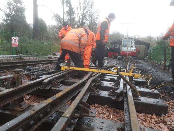8. By close of play the turnout has been completed with all sleepers packed with ballast underneath. next week the ballast will be dropped in between the sleepers and the foot crossing reinstated.