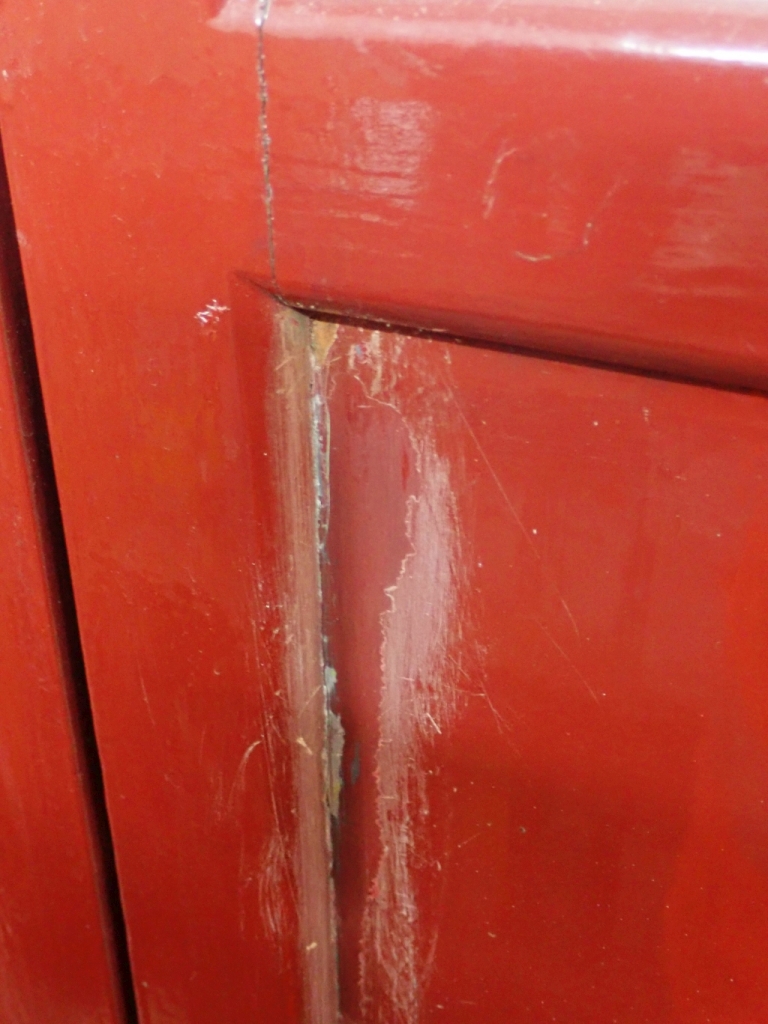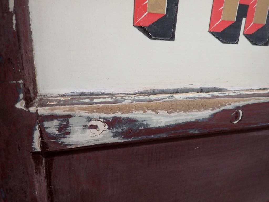 11. & 12. Paint on wooden mouldings and metal panels cracks and peels. All these defects have to be rubbed down, filled if necessary and sealed before the application of new paint and varnish.