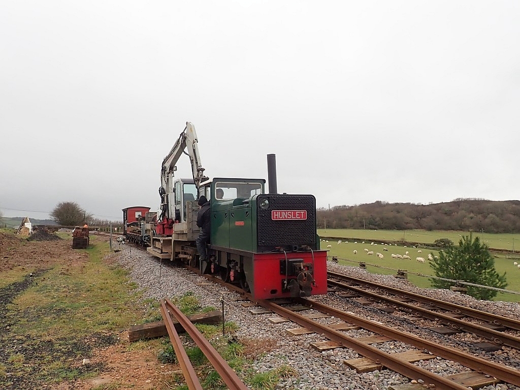 9. & 10. Having delivered sleepers to each of the locations where they will be needed, the works-train, loaded with rotten fence posts and other debris destined for the bonfire, made its way to Killington Lane. The opportunity was taken to load some wagon-wheelsets for transporting back to Woody Bay. The least worn wheelsets will be selected for refurbishing and machining as part of the restoration of Van 23.