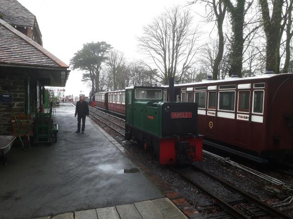 4. A quiet Woody Bay Station with small works locomotive HEDDON HALL stabled alongside the carriages.