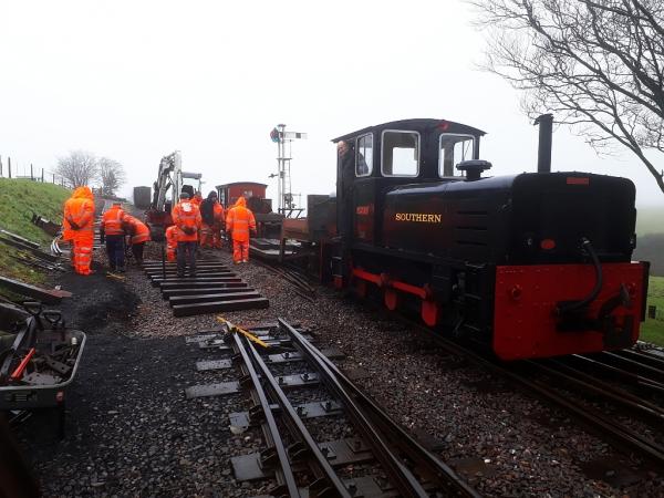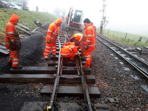 The upgrade of the transhipment siding continued today. The regrading and renewal of sleepers along this turnout will allow for easier access for all the rolling stock - both resident and visiting - that goes over this point.