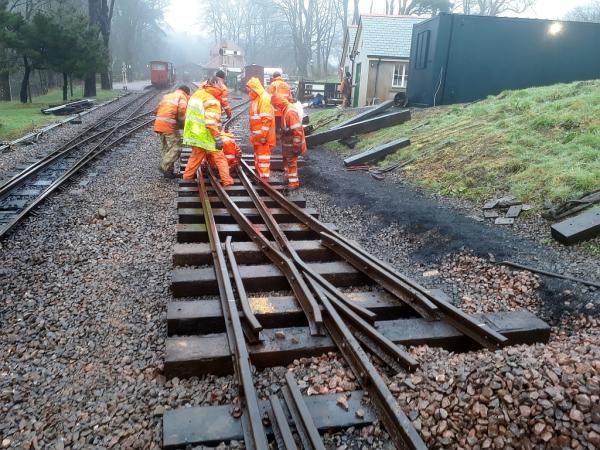 1. This morning's work for the track gang was to detach all the rails from the left hand turnout which leads to the transhipment siding/headshunt from the loading dock and/or the up platform.