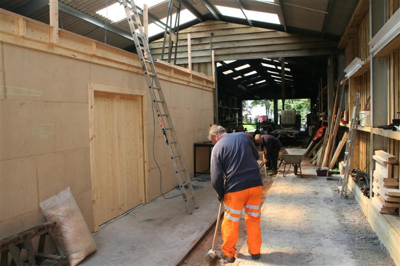 With three of the regular members of the Thursday gang (Robin Edwards, Jim Price and Dave Tooke) rostered as train crew today , it was left to Martyn, Stuart, Nigel, John and Richard to carry on with the hard work of lifting several large items onto the roof storage space above the new workshop within the shed.