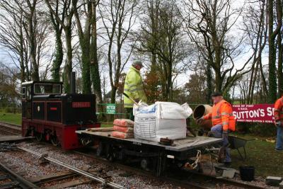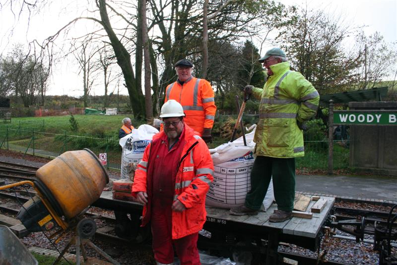 3. Robin Edwards helps Peter and Phil with mixing the concrete on the works train.