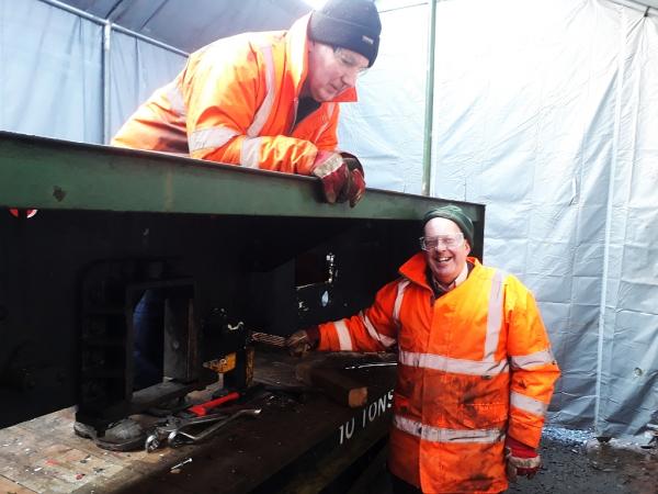 6. With Paint Shop Boys leader, Jim Pounds, absent today (recovering at home), Barrie Cann and Phil Dixon managed a sneaky coffee and cake break in between their efforts on Carriage No.11.