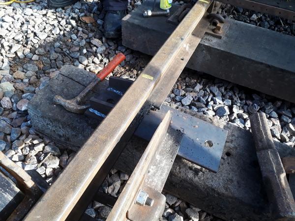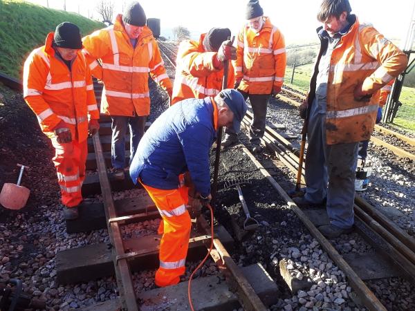 21. Martin Harvey with the drill - as the new rails are fixed to gauge this afternoon.