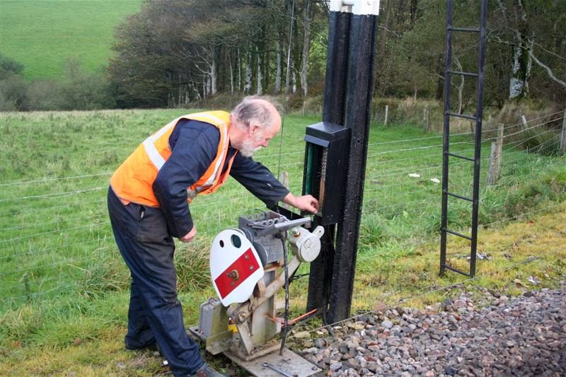 1. Don Newnham replaces the shunt signal lamp on the down home with a brighter LED one.