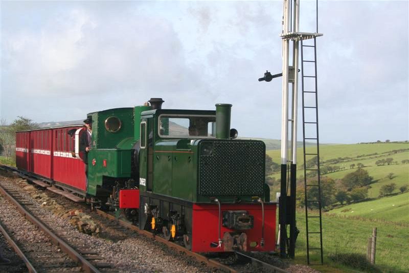 An unseasonably mild, but dry autumnal day greeted the volunteers (and visitors) at Woody Bay this week. The passenger train was operating as a top and tail with steam loco AXE and Hunslet diesel HEDDON HALL.
