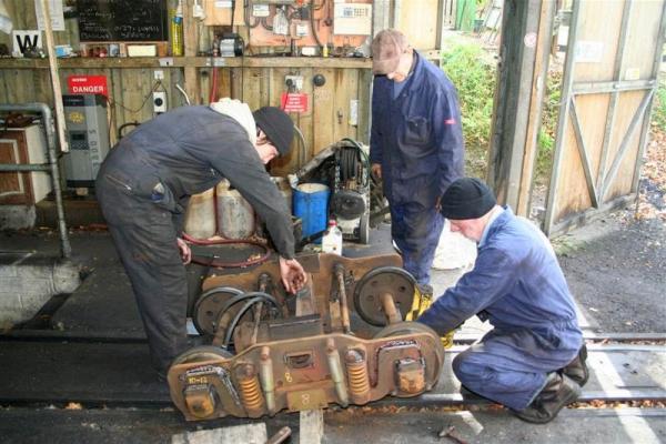 11. The engineers were busy overhauling a carriage bogie (number 8, from Coach 4) as part of the rolling stock maintenance programme.