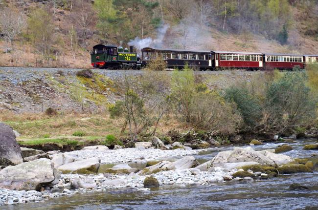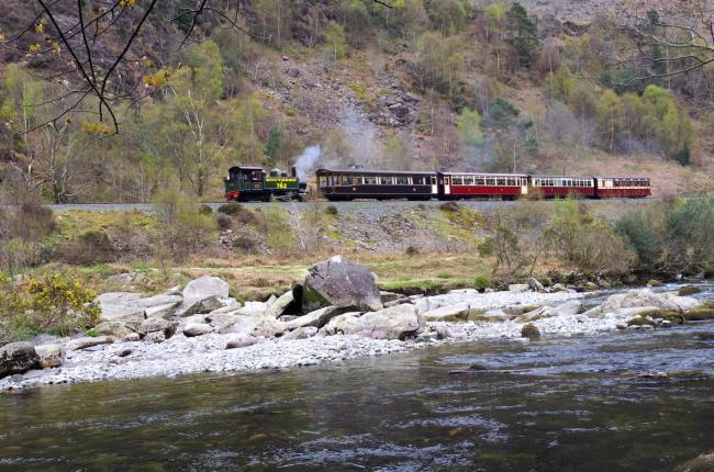 We stayed in the town for a while, but in the car we overtook the train below Beddgelert, so stopped in the Aberglaslyn Pass to watch it pass.