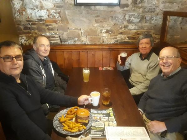 6. Chris, Dave, Dave, and Chris psoe for the camera at Wetherspoons for the madatory lunch and drink at the White Bull pub.