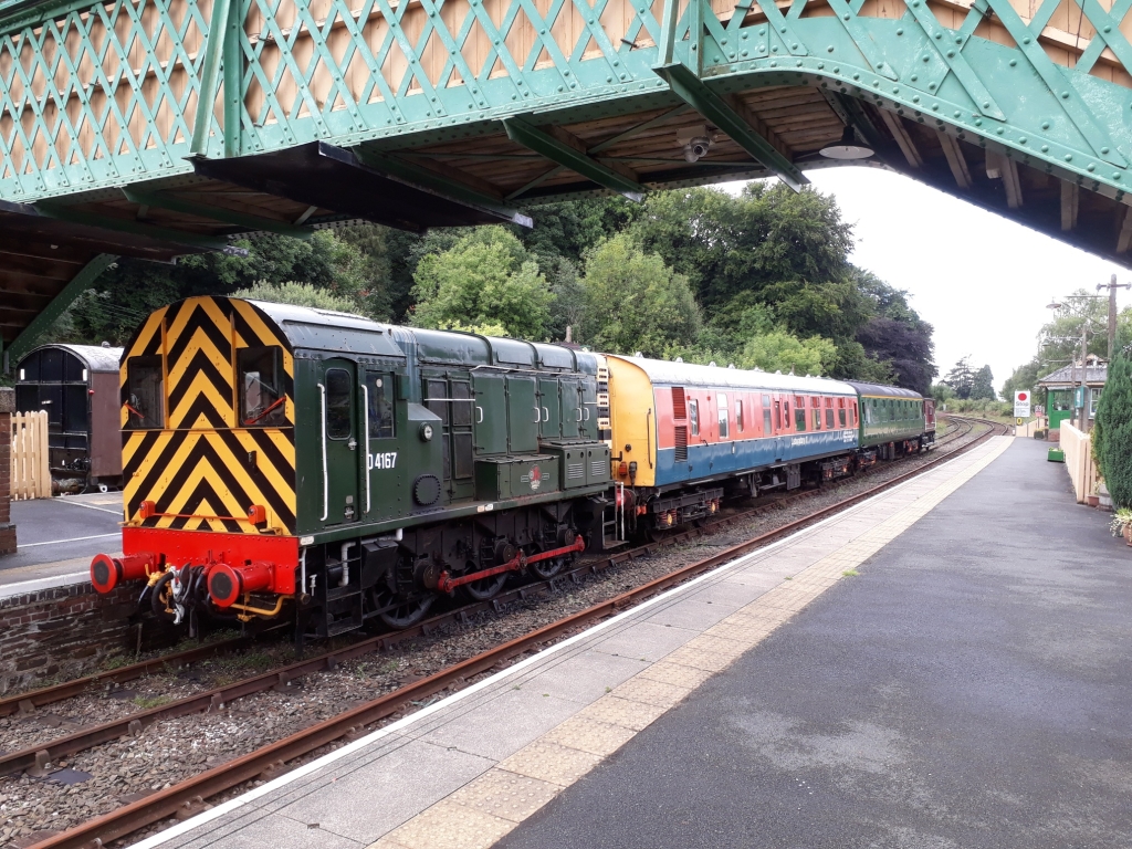 4. Back at Okehampton, the next plan was to sample the Dartmoor Railway to Meldon. This Class 08 D4167 will shunt the carriages and brake van uphill to Meldon Viaduct Halt.
