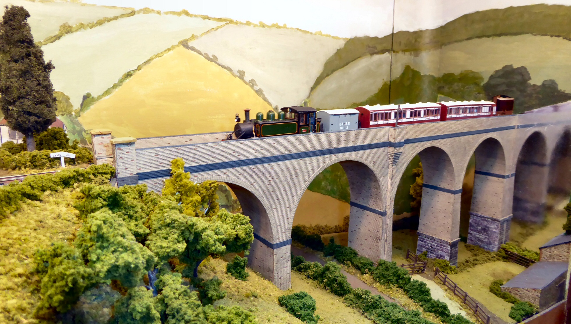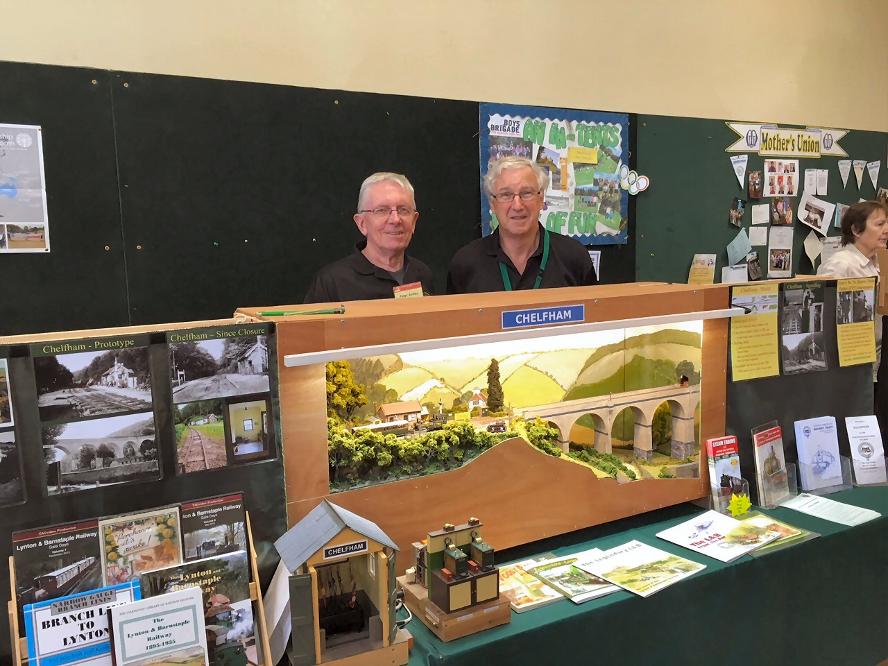 Because of the nature of the event, we were asked to provide a working model railway layout in addition to our usual L&B Trust display and sales stand. In 2015, our model was of Barnstaple Town station, but this time we took Bob Barnard’s new diorama-style layout showing half of Chelfham viaduct and half of the adjacent station.