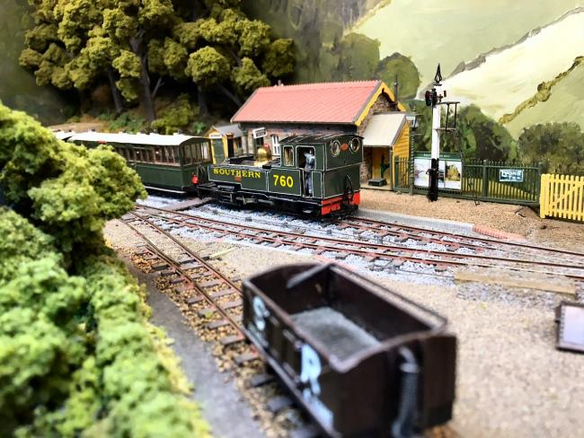 At lunchtime, the buildings and structures on the layout were replaced with models reflecting the state of the station around 1930, and a similar intensive service of SR-liveried trains operated all afternoon.