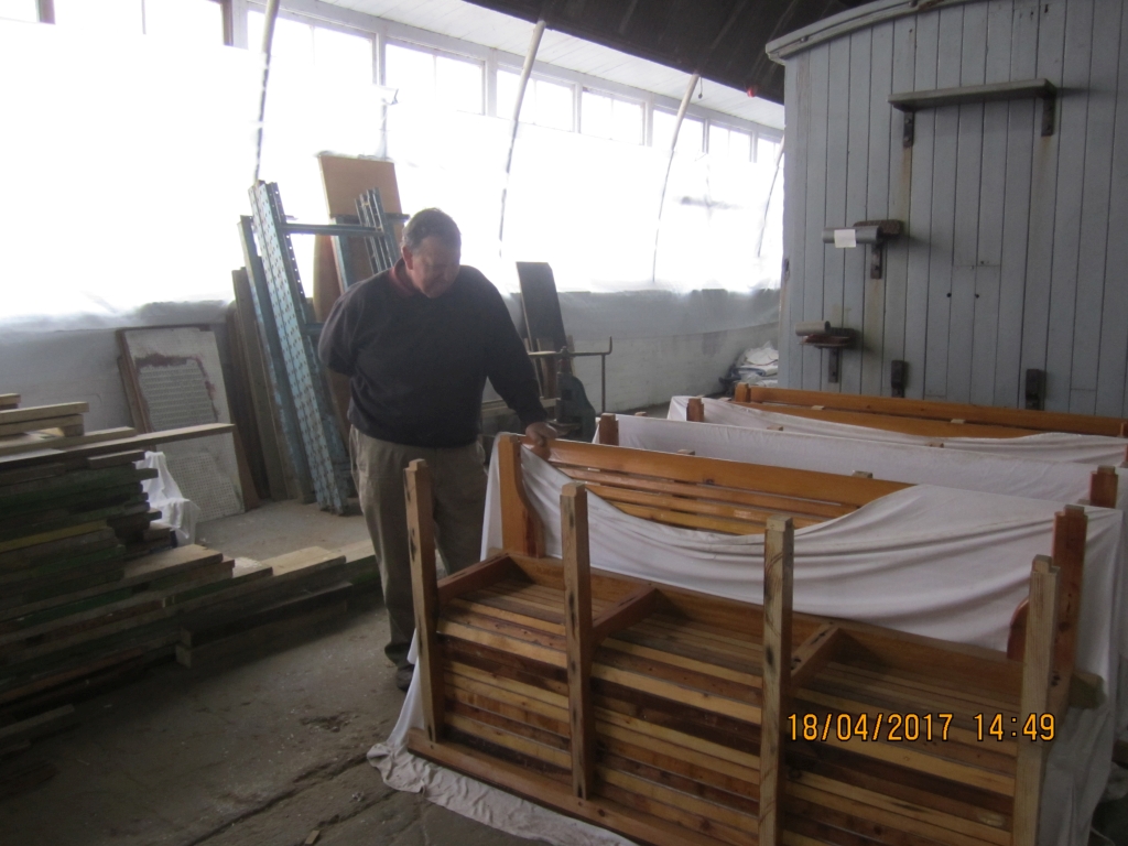 Charles Summers surveys 3rd Class seats all packed up and ready to go. Photos Dave Gandell