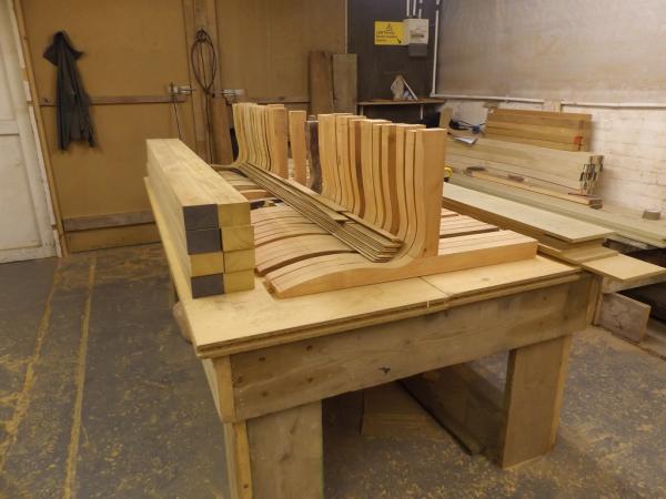 So far using this wood we have machined the floor boards out of the seats, seat slats and seat legs out of various rails, the roof boards out of the flooring and the seat frames cut out of the floor joists.